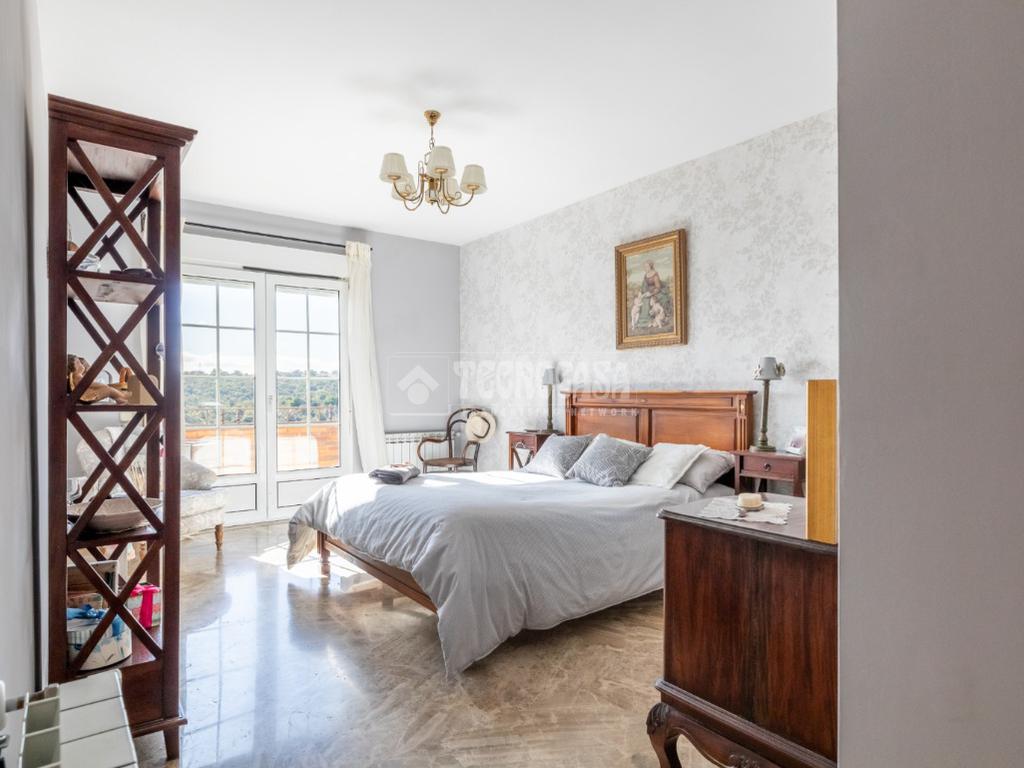 La planta superior alberga cuatro amplios dormitorios, todos ellos caracterizados por su excelente iluminación natural y generosas dimensiones. El dormitorio principal dispone de vestidor, baño en suite y terraza privada. En esta misma planta se encuentra un tercer baño completo que da servicio al resto de las habitaciones, asi como una amplia terraza adicional.